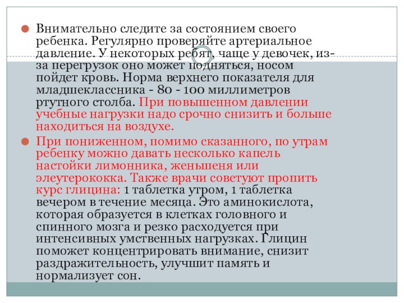 Слайд 16Внимательно следите за состоянием своего ребенка. Регулярно проверяйте артериальное давление. У