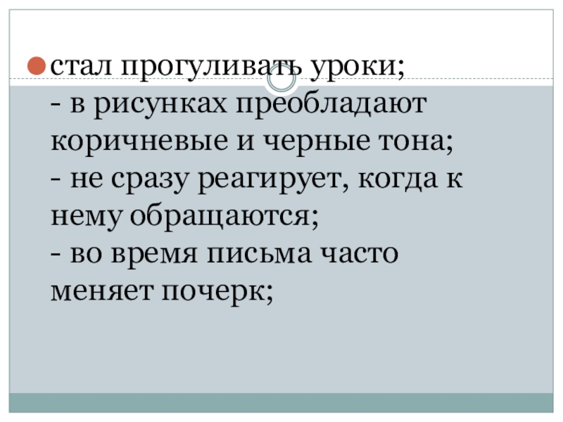 - не может заставить себя сесть за уроки, либо делает их быстро и плохо, чтобы отделаться, хотя раньше этого не наблюдалось;