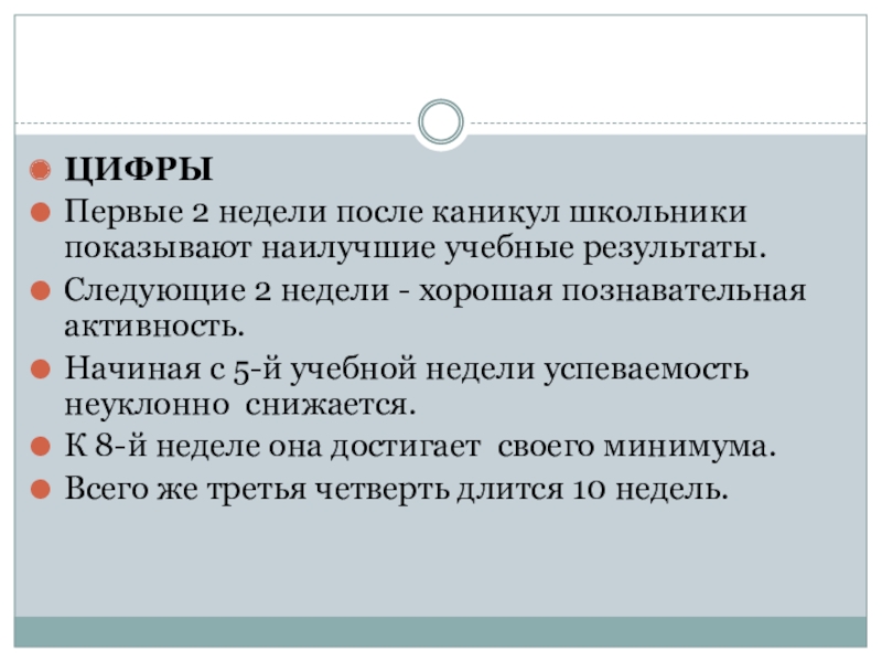 Первые 2 недели после каникул школьники показывают наилучшие учебные результаты.