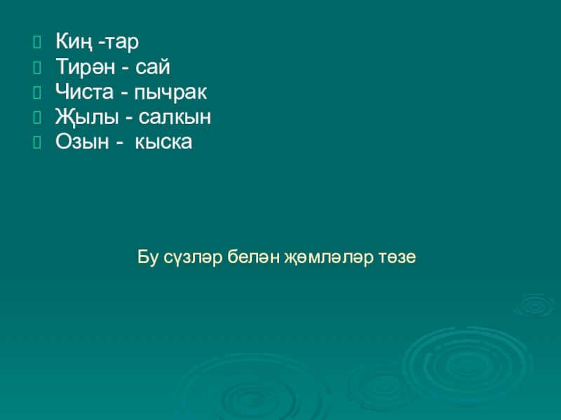 Слайд 9Бу сүзләр белән җөмләләр төзе