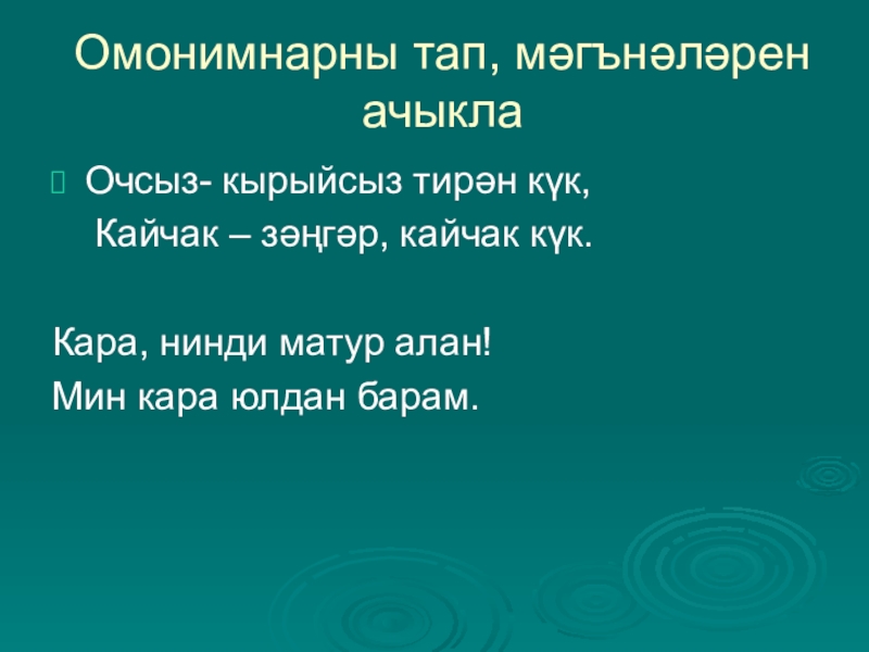 Слайд 25Омонимнарны тап, мәгънәләрен ачыкла