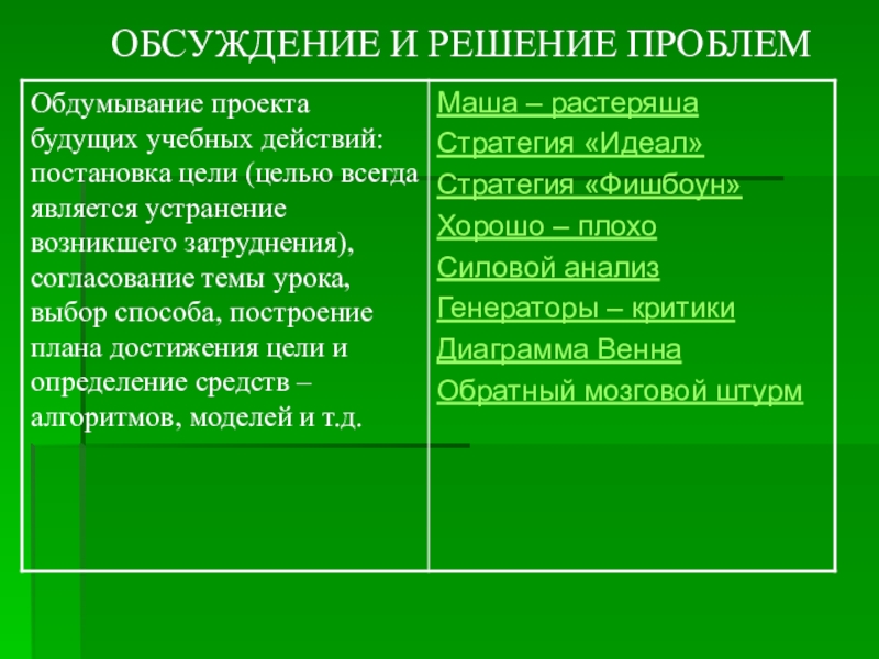 Слайд 5ОБСУЖДЕНИЕ И РЕШЕНИЕ ПРОБЛЕМ