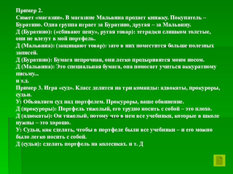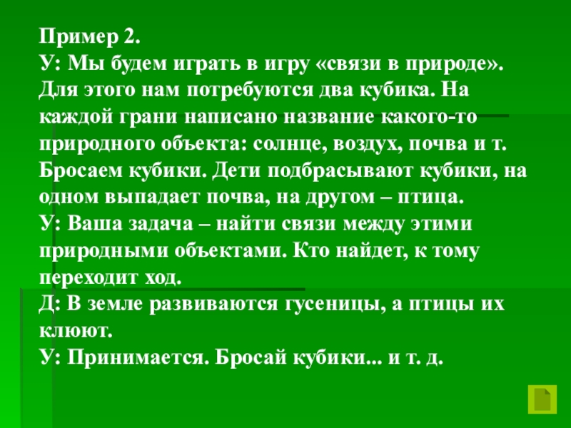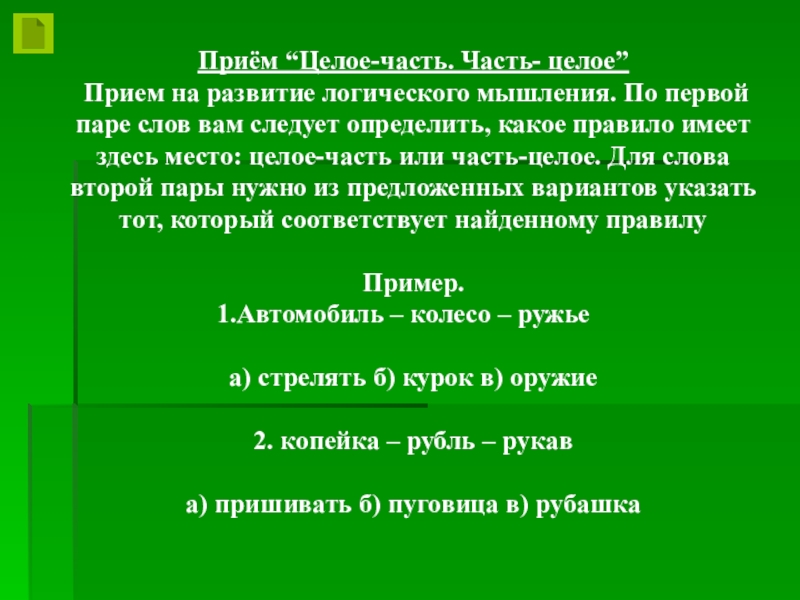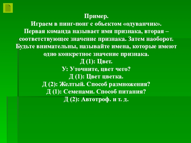 2-й называет другой объект с тем же значением указанного признака и другой признак («у него – часть речи»);