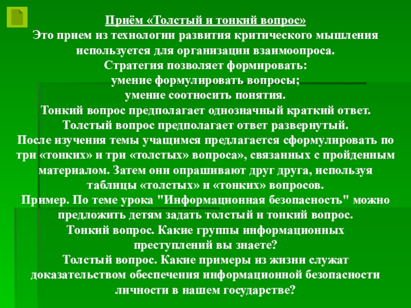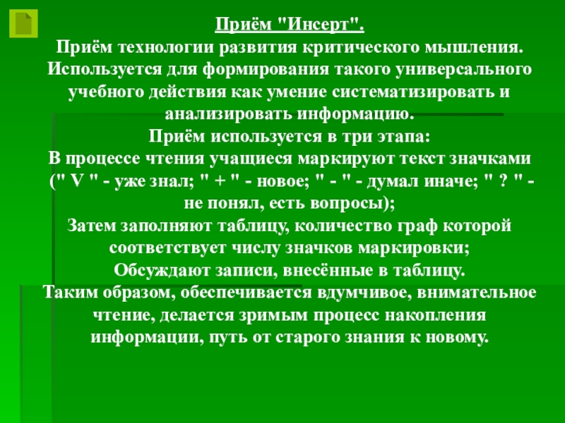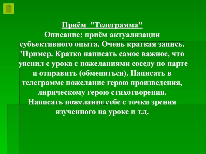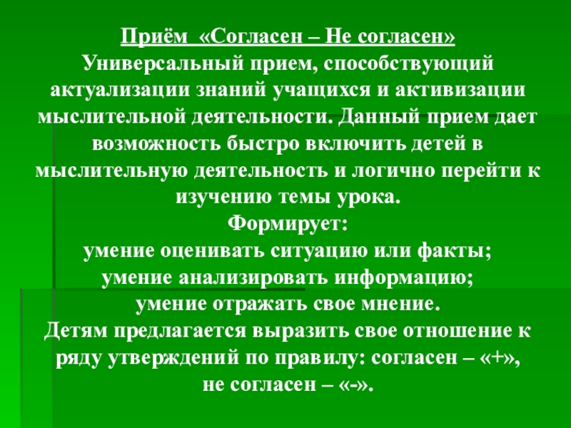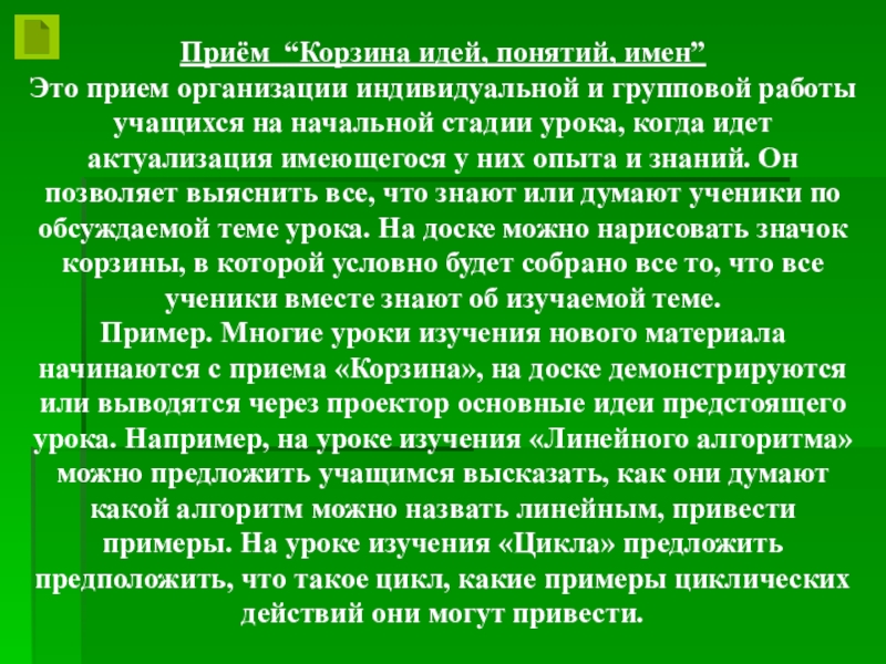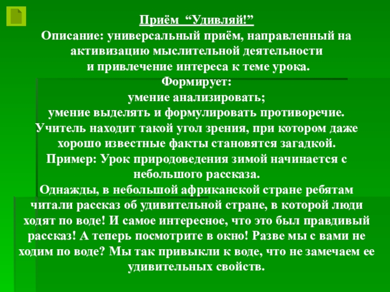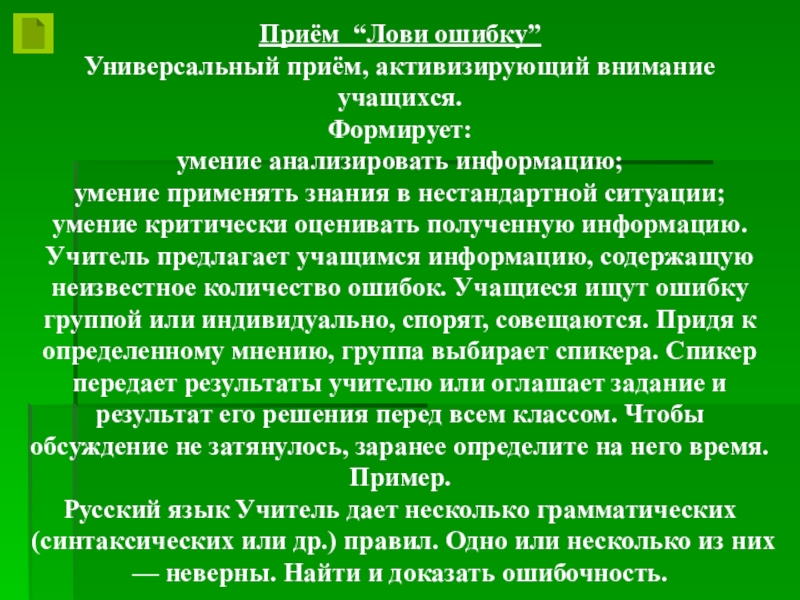 Описание: универсальный приём, направленный на активизацию мыслительной деятельности