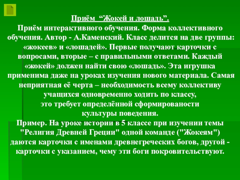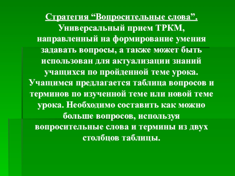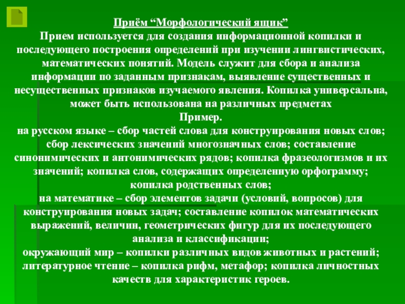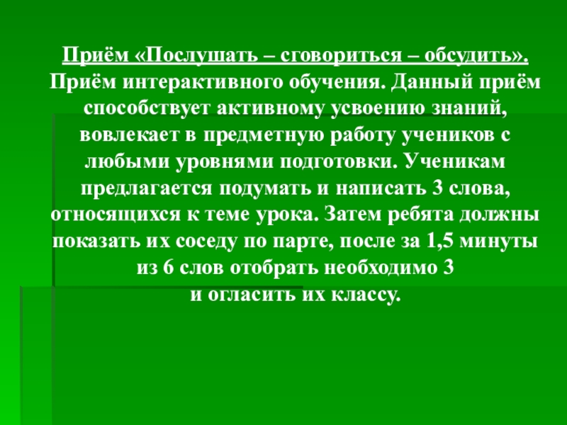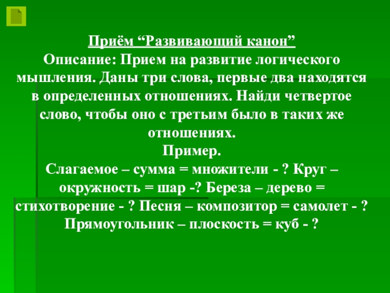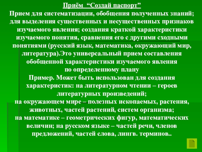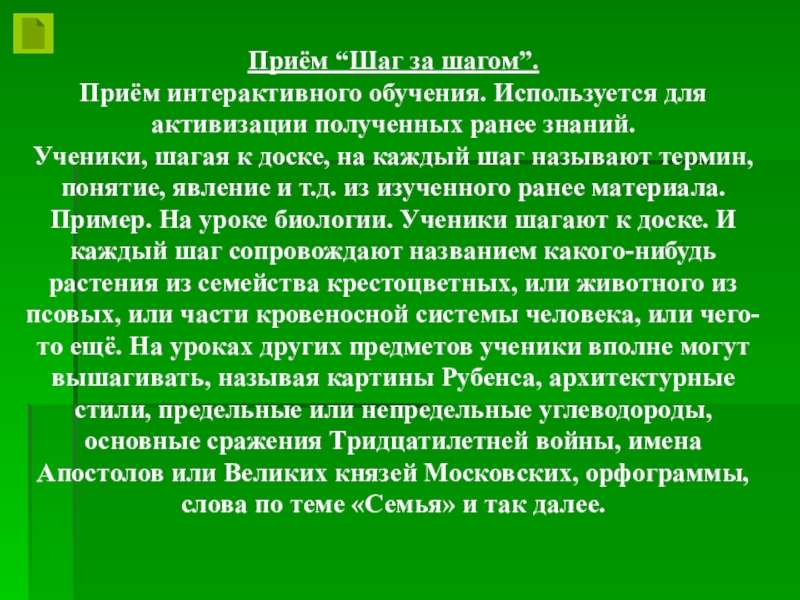 Описание: универсальный приём, направленный на активизацию мыслительной деятельности