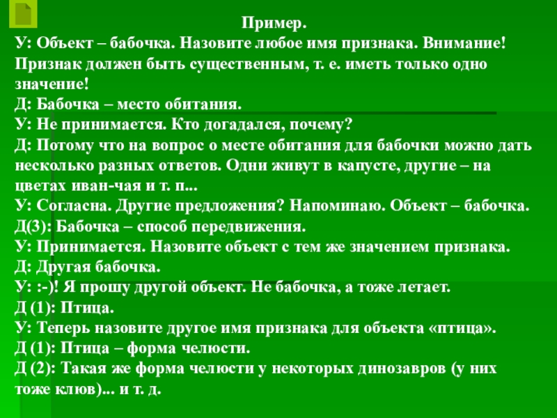У: Объект – бабочка. Назовите любое имя признака. Внимание! Признак