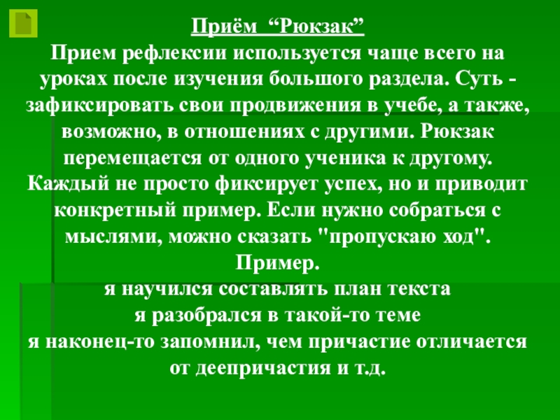 Рефлексивный прием, способствующий развитию умения осмысливать свой