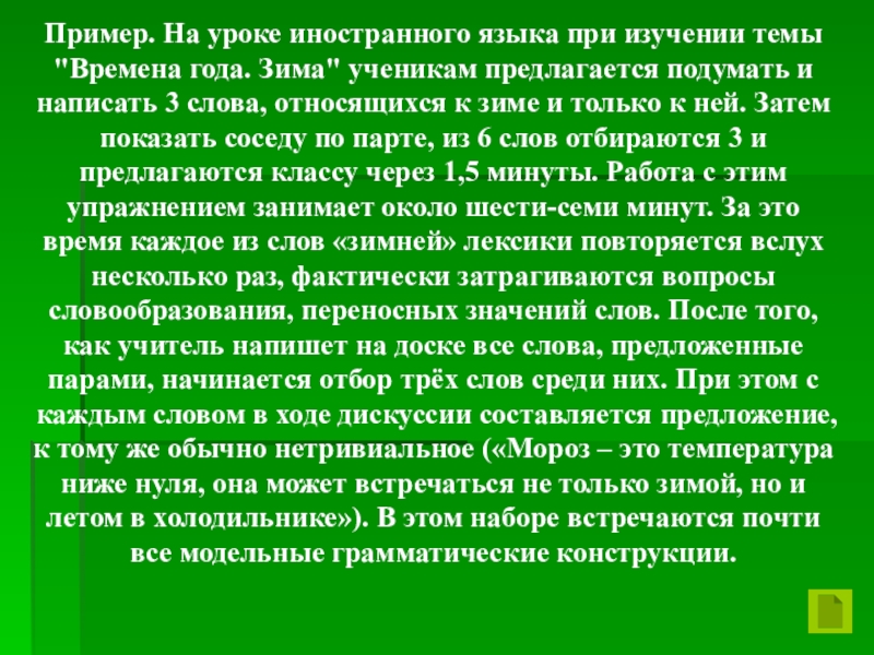 Пример: Урок природоведения зимой начинается с небольшого рассказа.