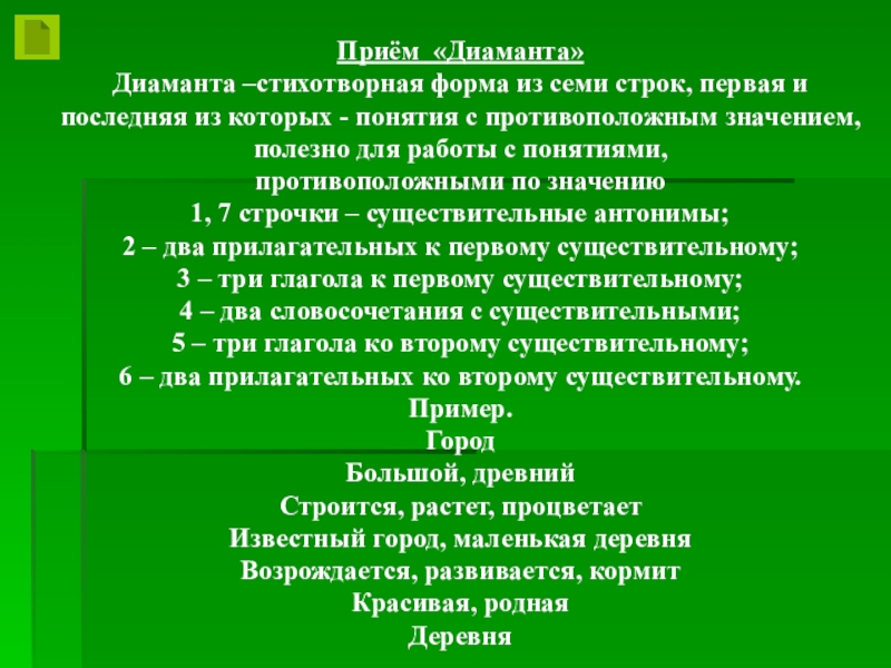 Диаманта –стихотворная форма из семи строк, первая и последняя