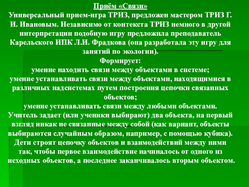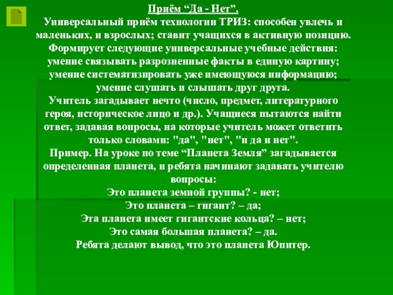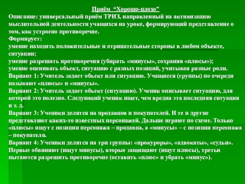 Универсальный прием ТРИЗ, направленный на включение учащихся