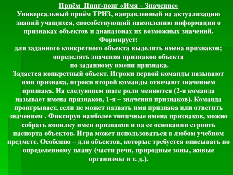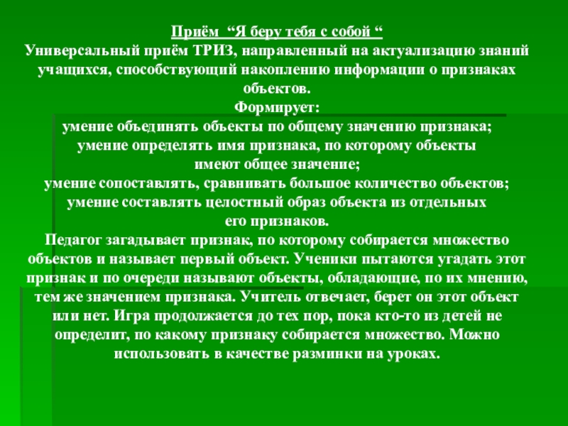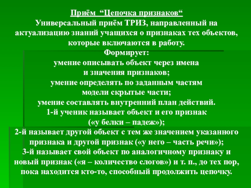 Универсальный приём ТРИЗ, направленный на актуализацию знаний учащихся о