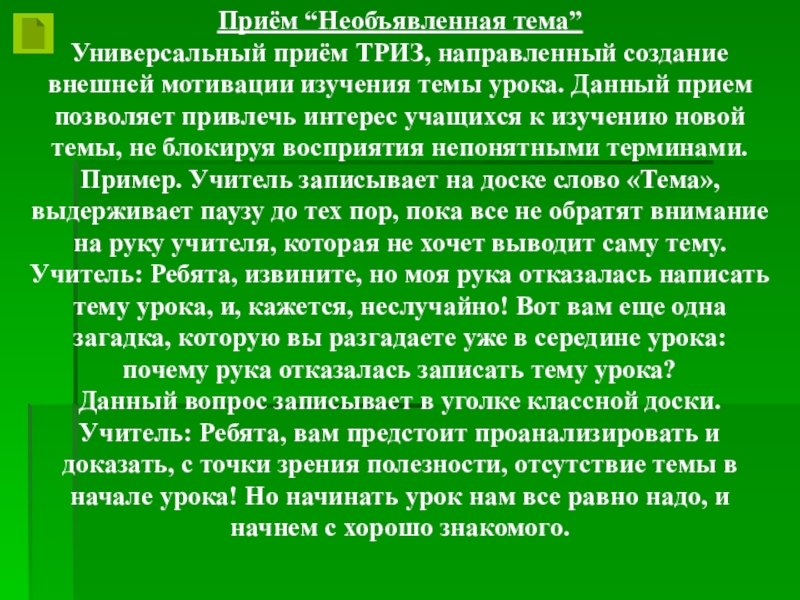 Универсальный приём ТРИЗ, направленный создание внешней мотивации изучения темы
