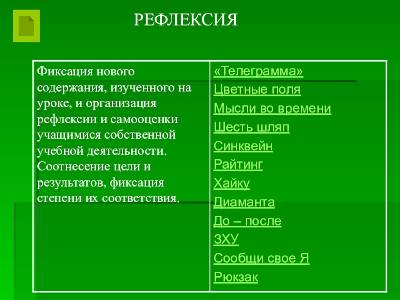 Рефлексивный прием, способствующий организации рефлексии на уроке.