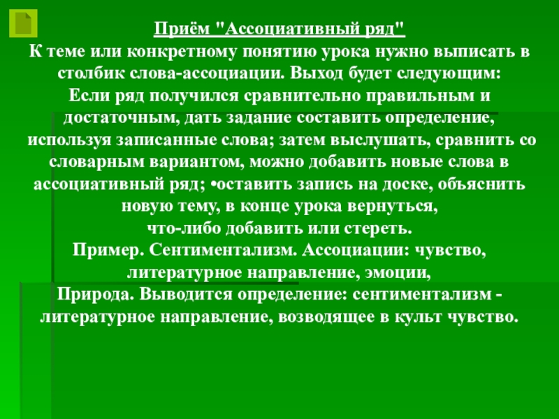 Пример. Сентиментализм. Ассоциации: чувство, литературное направление, эмоции,