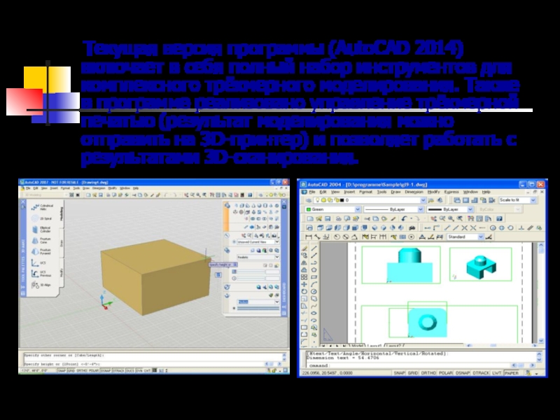 Слайд 26 Текущая версия программы (AutoCAD 2014) включает в себя полный