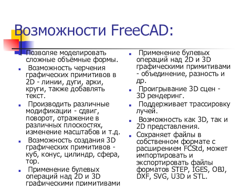 Слайд 4Возможности FreeCAD: