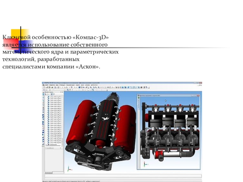 Слайд 18Ключевой особенностью «Компас-3D» является использование собственного математического ядра и параметрических технологий,