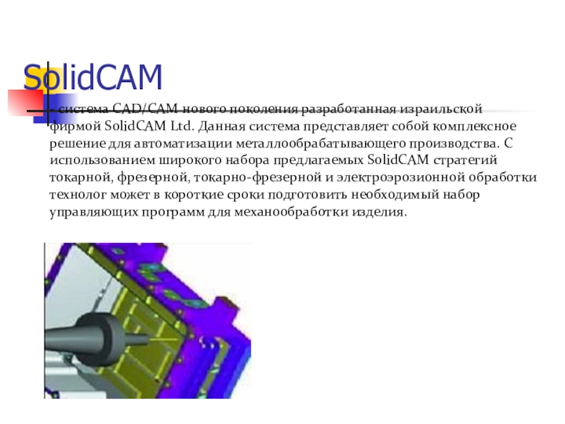 - система CAD/CAM нового поколения разработанная израильской фирмой SolidCAM Ltd. Данная