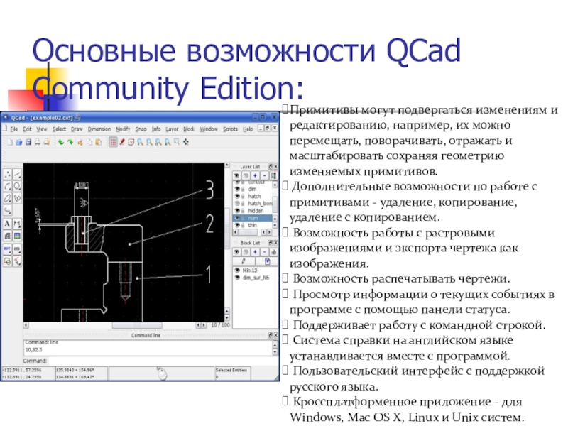 Слайд 7Основные возможности QCad Community Edition: