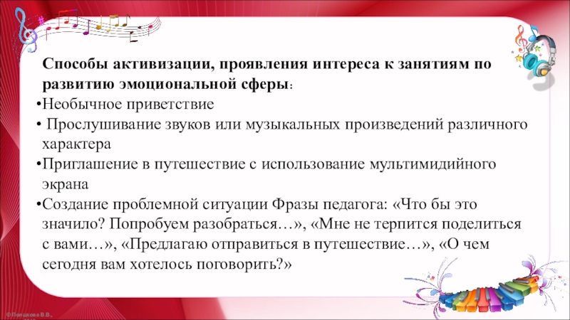 Слайд 12Способы активизации, проявления интереса к занятиям по развитию эмоциональной сферы: