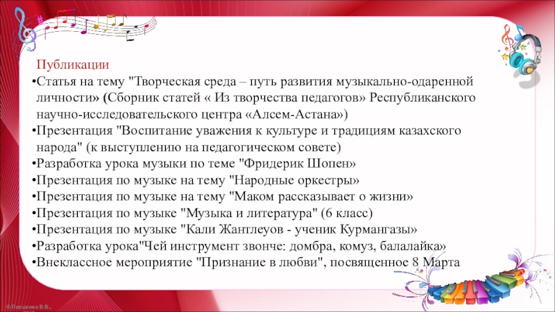 учителя музыки ГУ «Средняя школа №6 отдела образования акимата