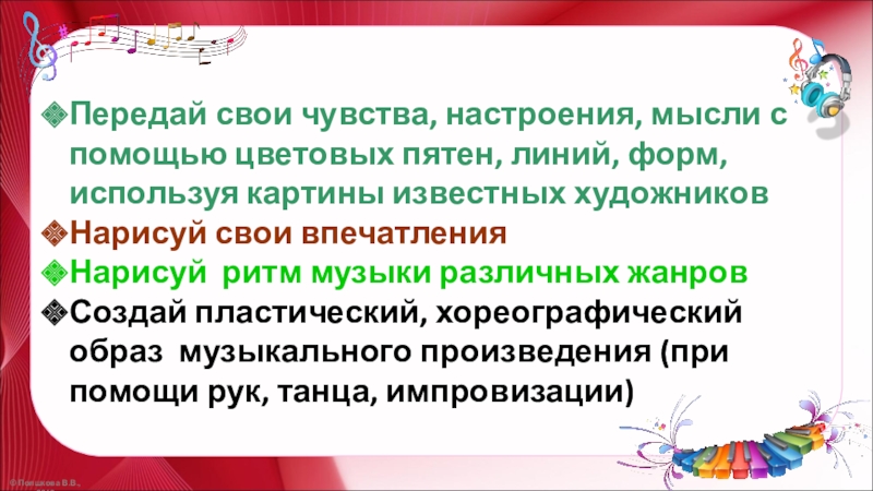 Передай свои чувства, настроения, мысли с помощью цветовых пятен, линий, форм, используя картины известных художников