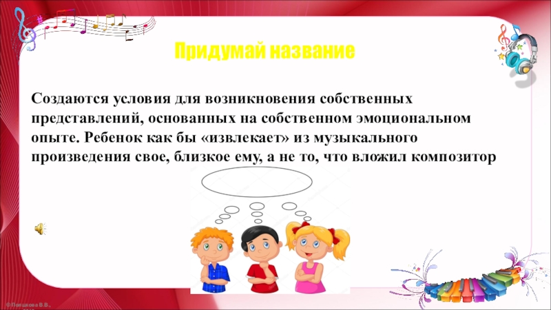опыте. Ребенок как бы «извлекает» из музыкального произведения свое, близкое ему, а не то, что вложил композитор