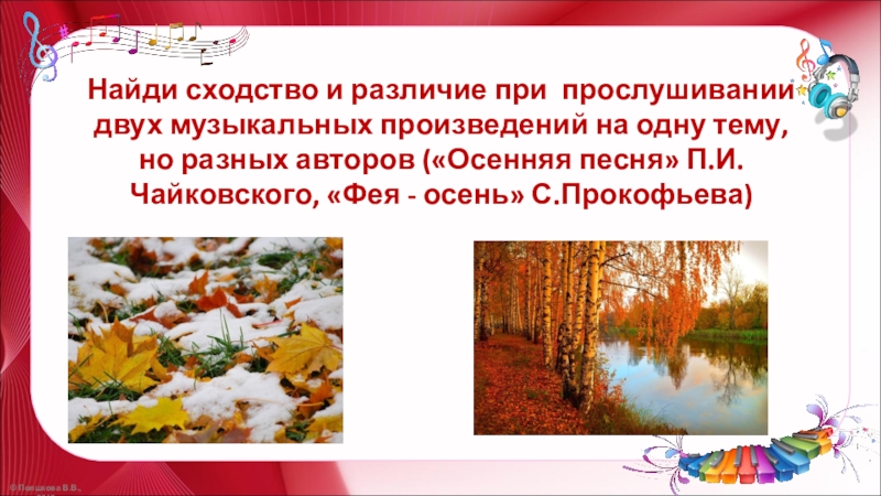 тему, но разных авторов («Осенняя песня» П.И.Чайковского, «Фея - осень» С.Прокофьева)