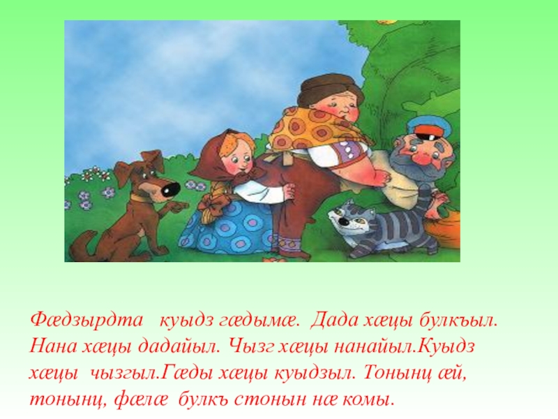 Слайд 7Фæдзырдта куыдз гæдымæ. Дада хæцы булкъыл. Нана хæцы дадайыл. Чызг