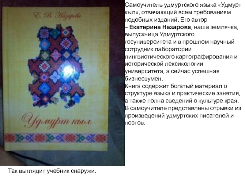 Спасибо Меньшикову-проректору по науке УдГУ за содействие в выпуске учебника удмуртского языка.