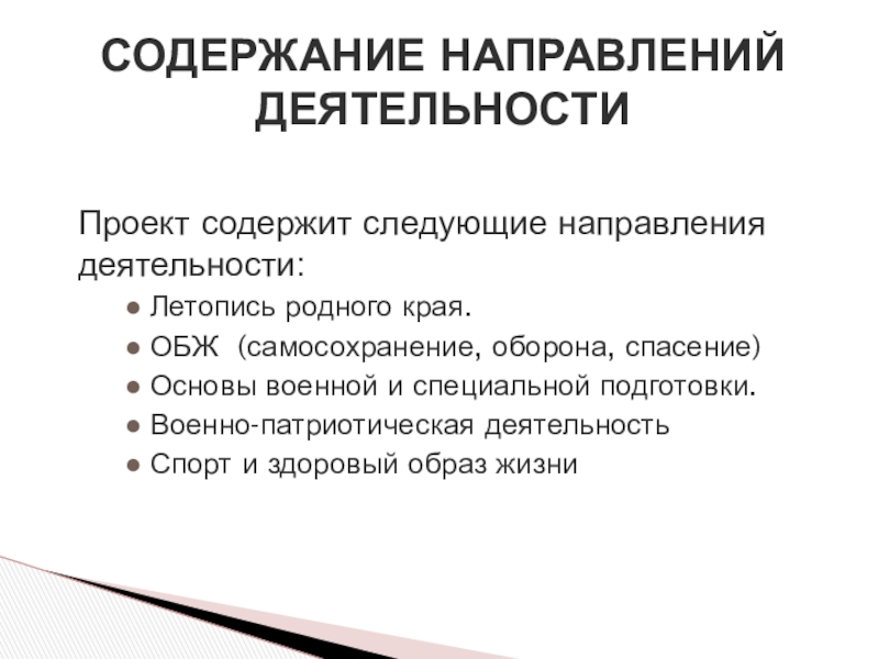 СОДЕРЖАНИЕ НАПРАВЛЕНИЙ ДЕЯТЕЛЬНОСТИ