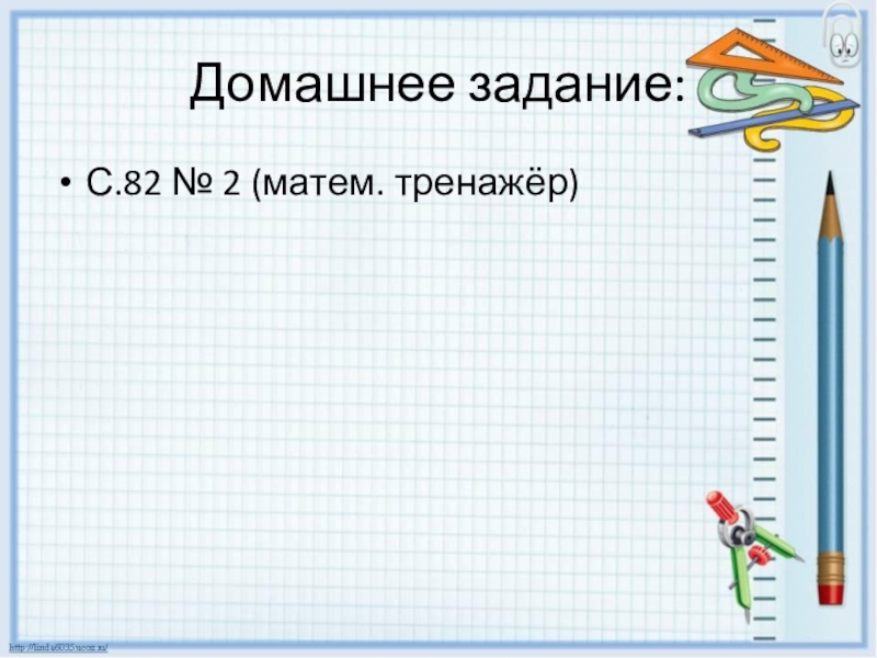 Домашнее задание:С.82 № 2 (матем. тренажёр)