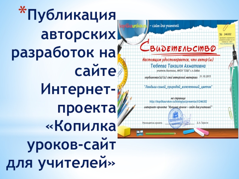 Это сайт презентаций, где можно хранить и обмениваться своими презентациями, докладами, проектами, шаблонами в формате PowerPoint с другими пользователями. Мы помогаем школьникам, студентам, учителям, преподавателям хранить и обмениваться учебными материалами.