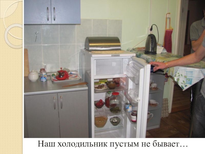 Слайд 15Наш холодильник пустым не бывает…