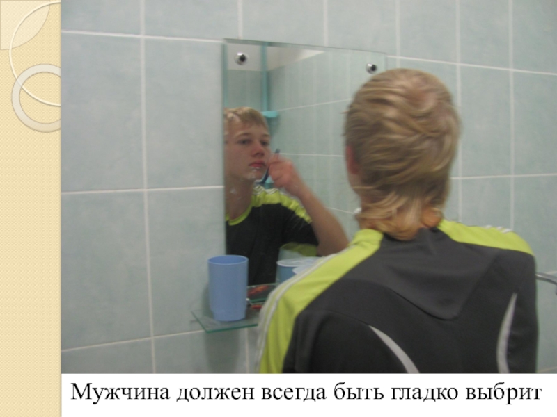 Слайд 12 Мужчина должен всегда быть гладко выбрит