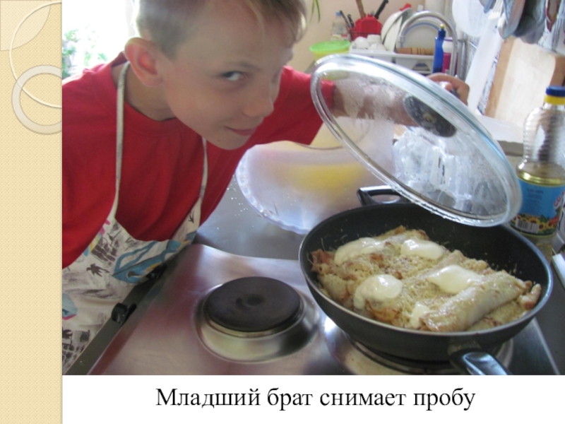 Слайд 18Младший брат снимает пробу