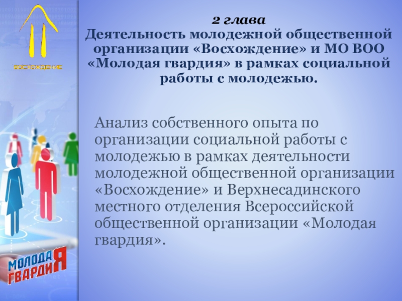 Анализ собственного опыта по организации социальной работы с молодежью в рамках деятельности молодежной общественной организации «Восхождение» и Верхнесадинского местного отделения Всероссийской общественной организации «Молодая гвардия».