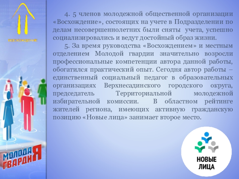 4. Результат трехлетней работы молодежной общественной организации «Восхождение» несомненно высокий.