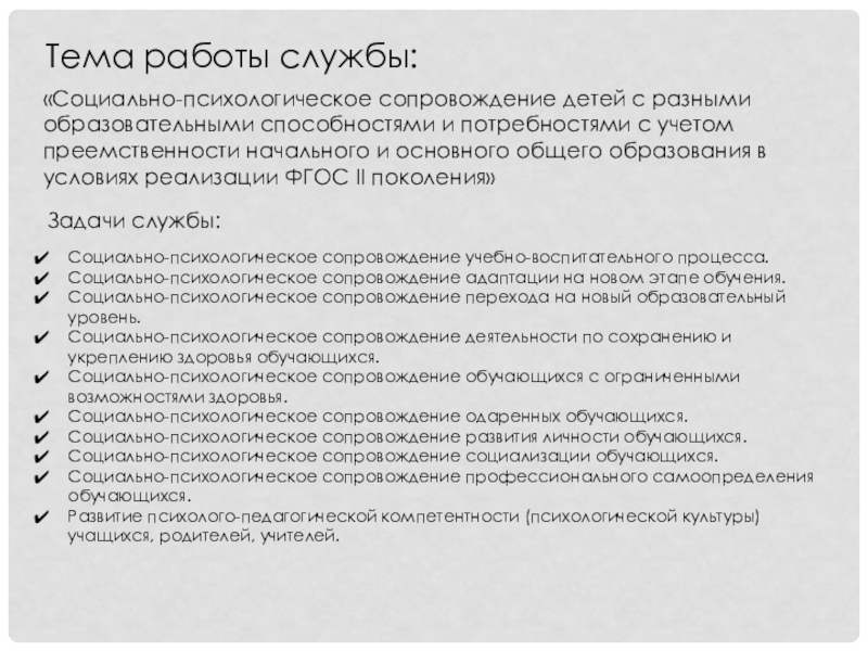 Социально-психологическое сопровождение учебно-воспитательного процесса.