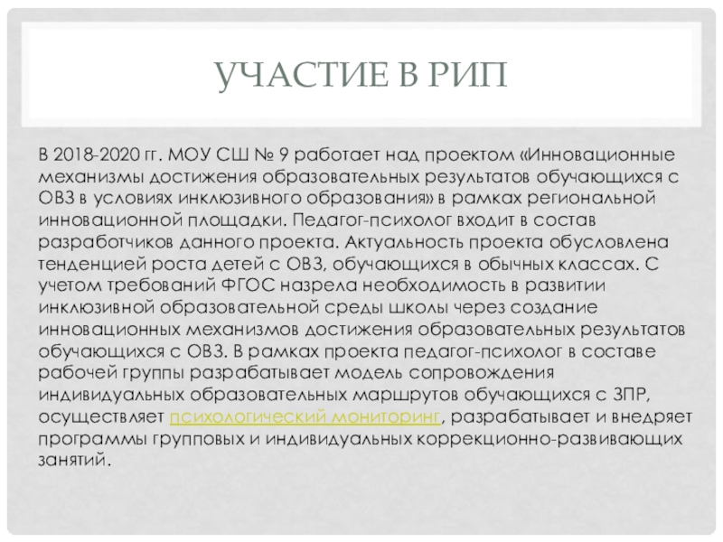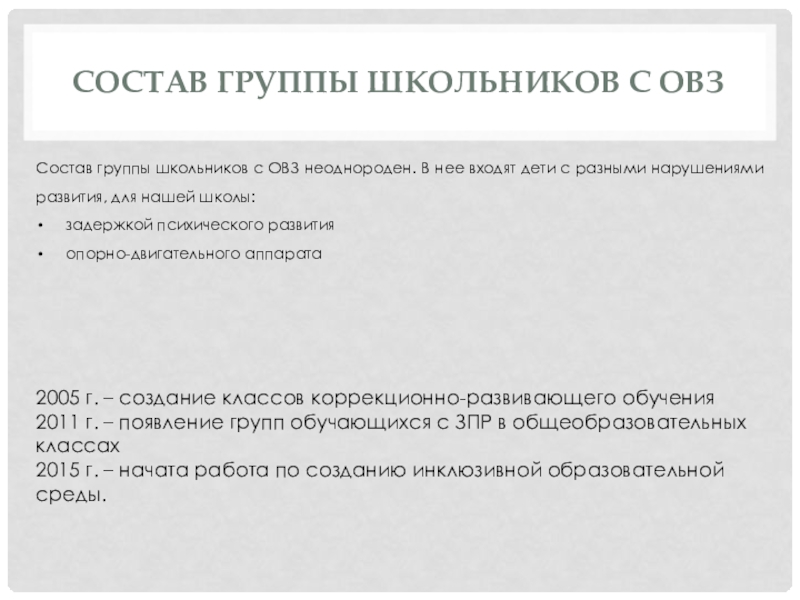 2011 г. – появление групп обучающихся с ЗПР в общеобразовательных классах