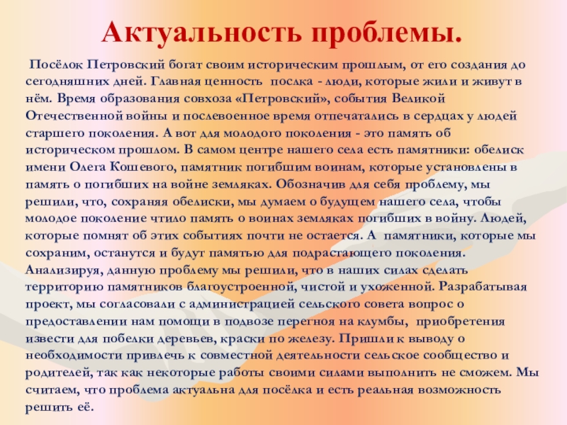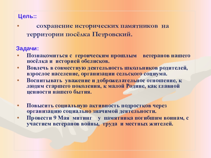 Знакомство с историей создания памятников.
