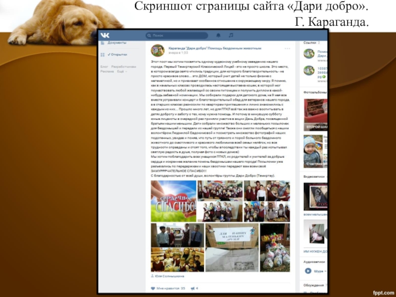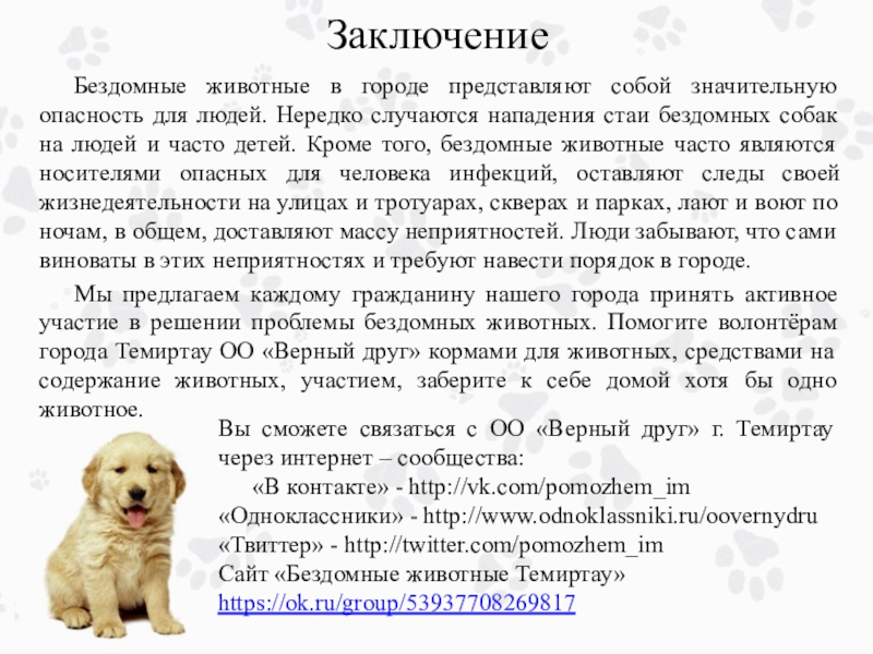 Сайт «Бездомные животные Темиртау» https://ok.ru/group/53937708269817
