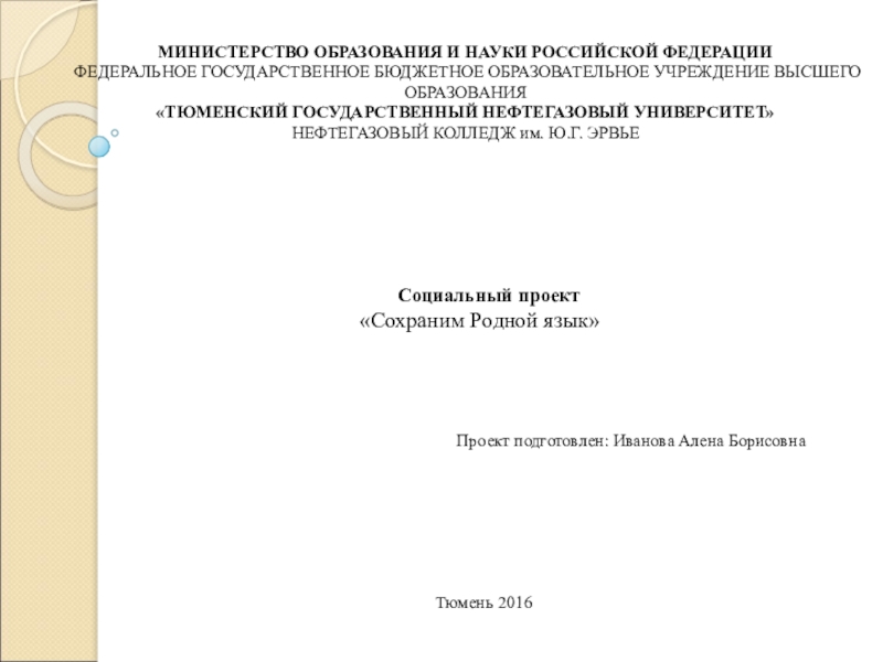 «ТЮМЕНСКИЙ ГОСУДАРСТВЕННЫЙ НЕФТЕГАЗОВЫЙ УНИВЕРСИТЕТ»
