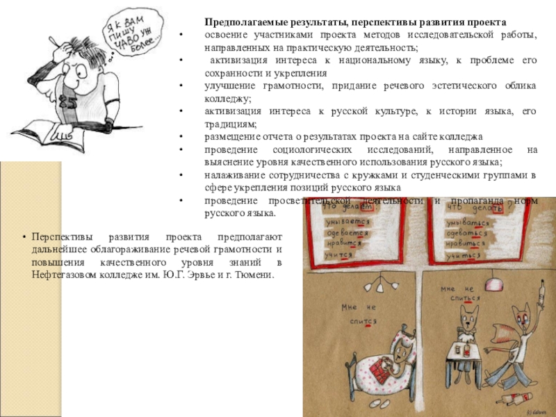 Перспективы развития проекта предполагают дальнейшее облагораживание речевой грамотности и повышения качественного уровня знаний в Нефтегазовом колледже им. Ю.Г. Эрвье и г. Тюмени.