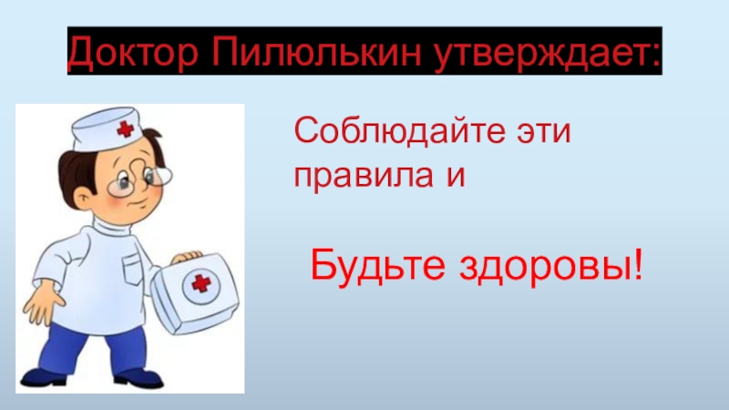 Доктор Пилюлькин утверждает:Соблюдайте эти правила иБудьте здоровы!
