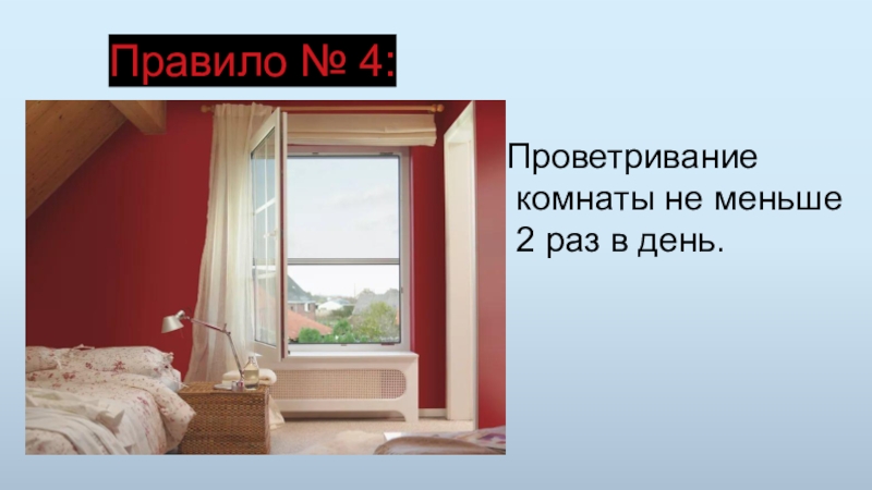 Правило № 4:Проветривание комнаты не меньше 2 раз в день.