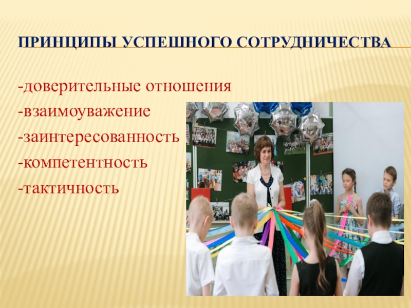 Принципы успешного сотрудничества-доверительные отношения-взаимоуважение-заинтересованность-компетентность-тактичность