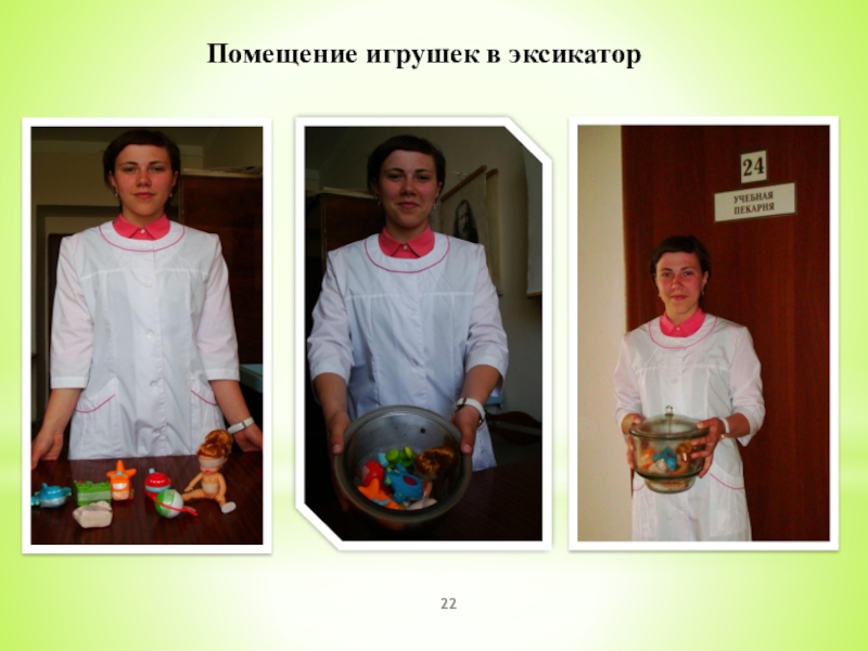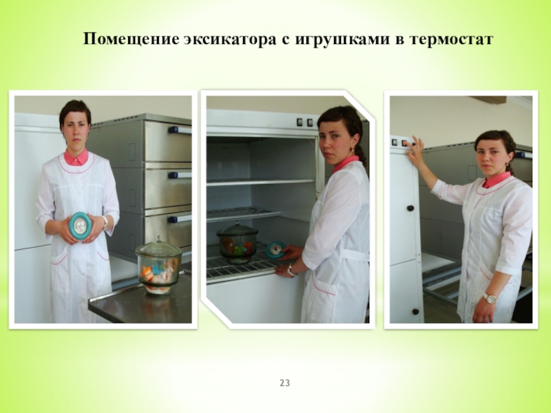 Слайд 23Помещение эксикатора с игрушками в термостат
