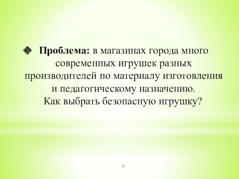 Слайд 6Проблема: в магазинах города много современных игрушек разных производителей по материалу