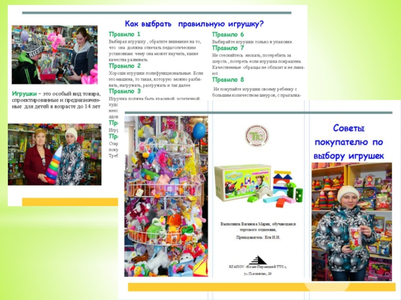 Подготовить буклеты «Советы по правильному выбору игрушки».